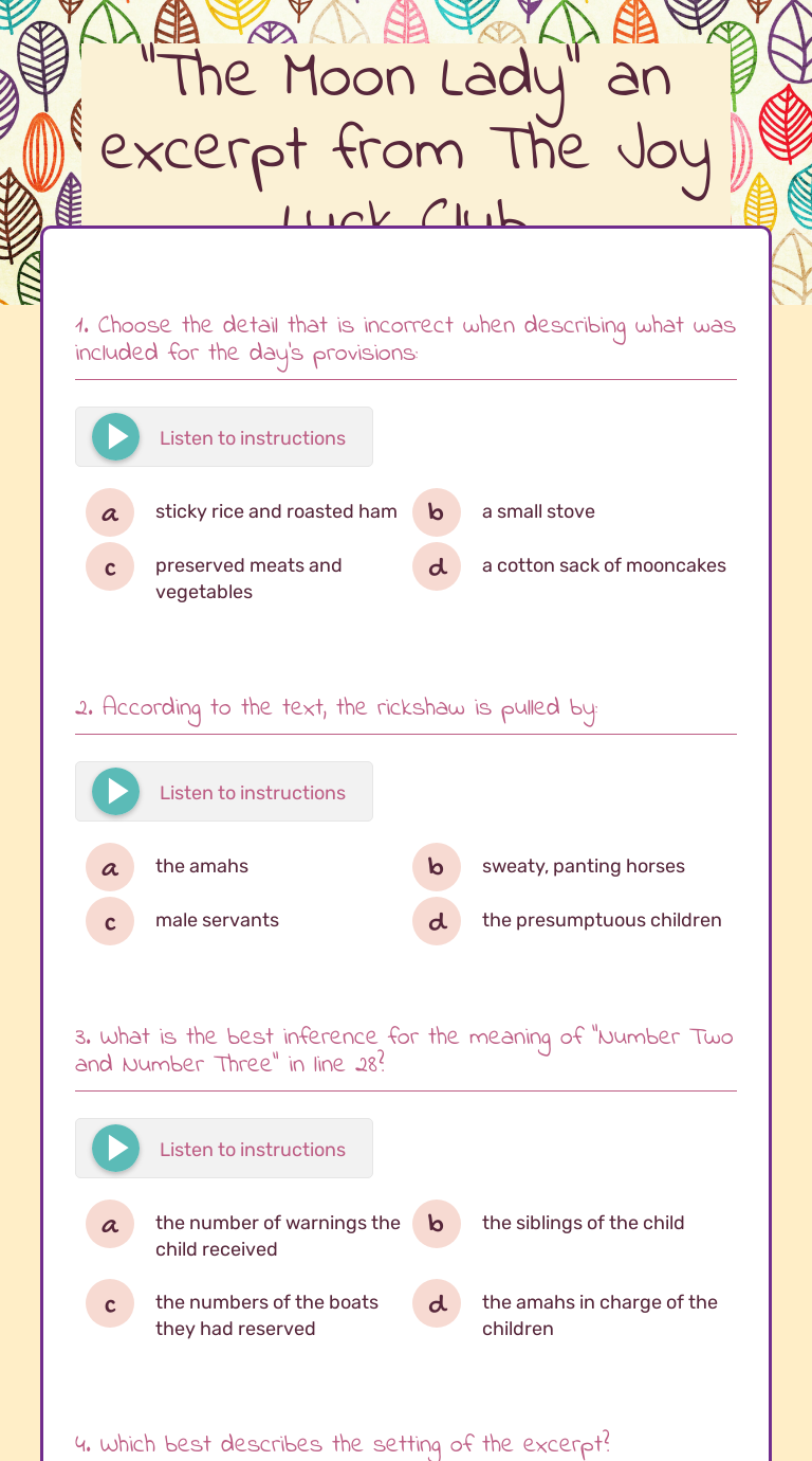 Gradual crescendo to forte Which of the following is NOT heard in this excerpt. A stretched skin or membrane _____3. In exploring technical resources of the instrument and its potential for expression. A column of air B. The following selection sung by Historicus comes from a. Each excerpt will be played three times. Which statement reflects the musical features of the following music example. The excerpt is being performed by a A. The dynamics in this example is best described as47.
