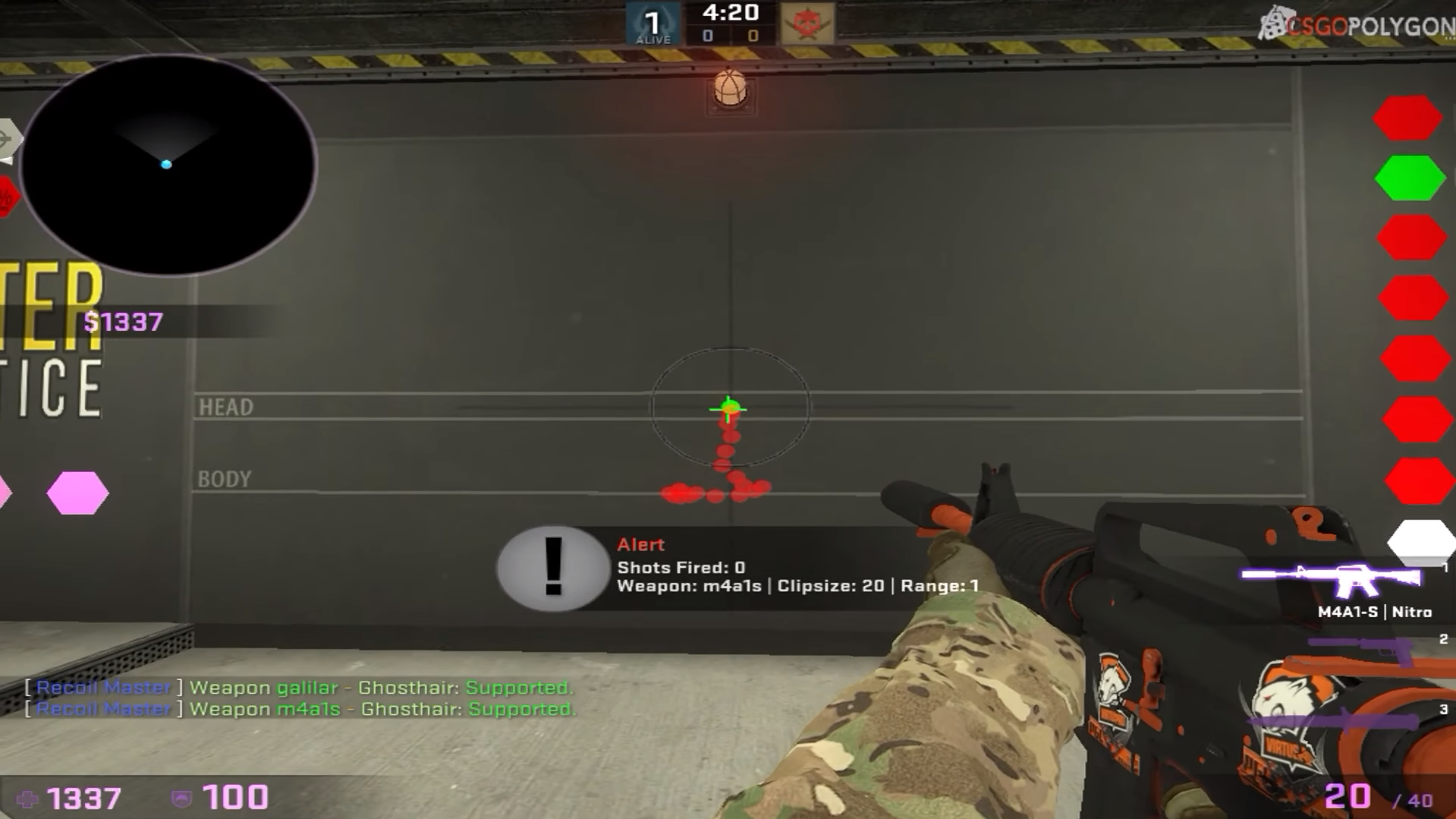 Tips on M249 recoil compensation. Type in sv_showimpacts 1 into the console to display bullet tracers. Nospread and show impacts are good for consistency Continue to practice against bots as spraying against moving targets can feel different compared to a wall Finally practice against real players in a deathmatch.